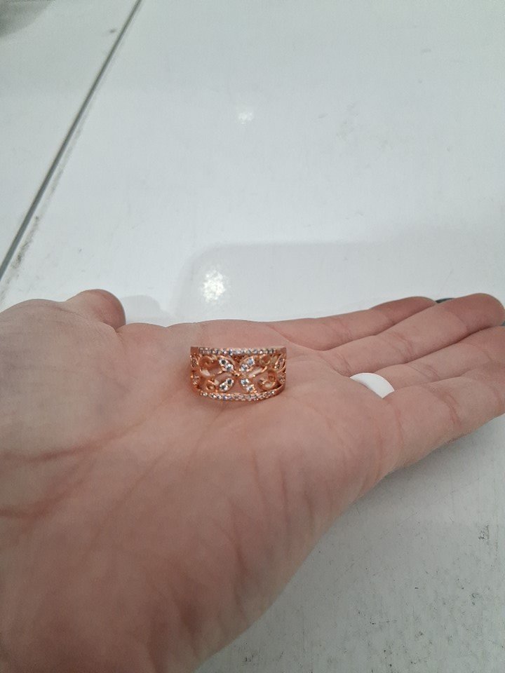 hallow flower buttferfly ring with zirconia accents - size 6.5 - rose gold plated