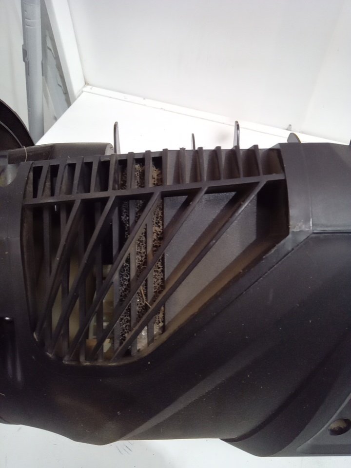 tested for power. appears to have dirt and grass on the front attachments of the lawn mower. please note that one of the attachment heads is missing. (see photo)