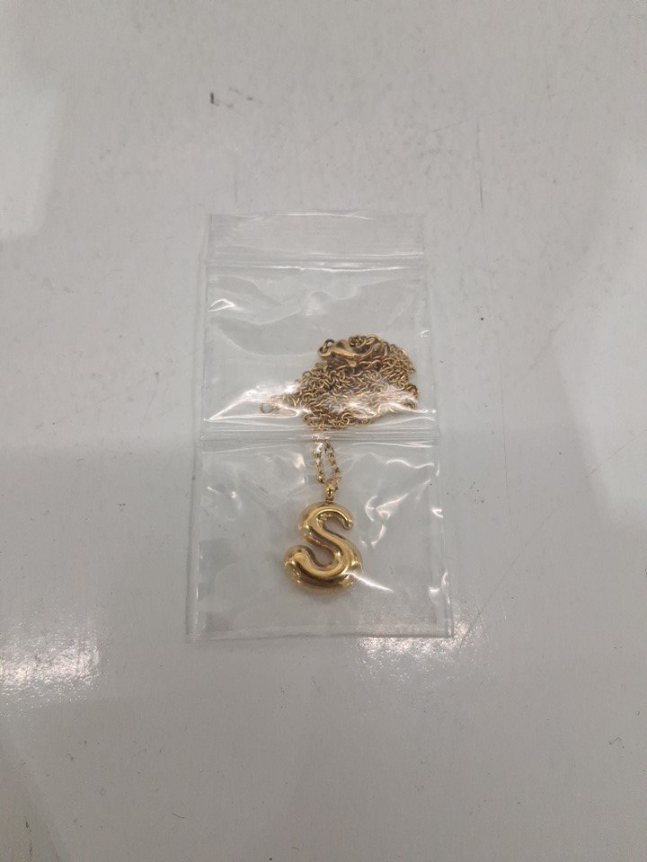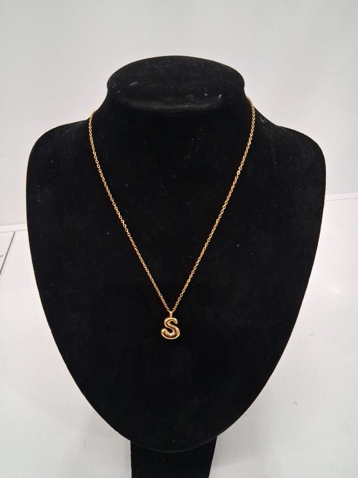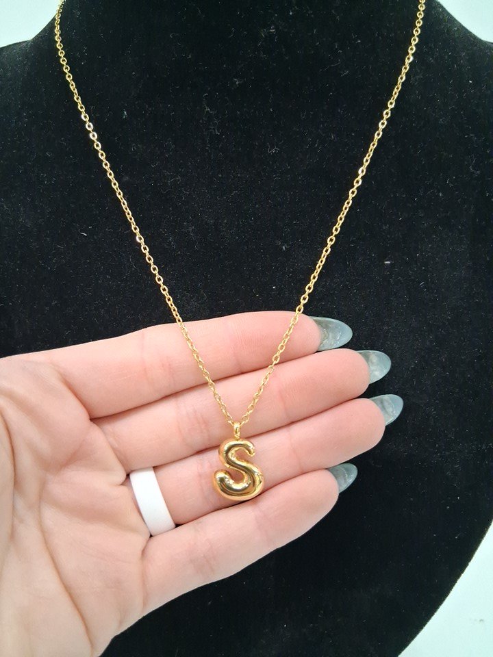women's bubble initial letter chain necklace - 17.5" - 19.5"/18mm pendant - steel gold/letter "s"
