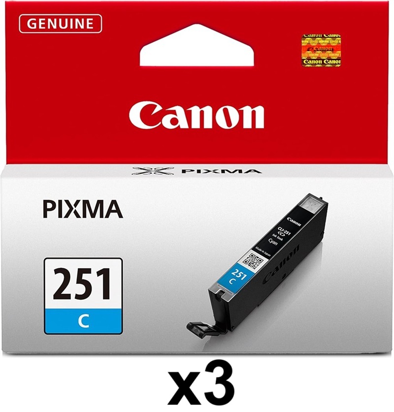 x3 Canon Pixma genuine Ink Tank - 7 ml - CYAN - (Model: CLI-251C)