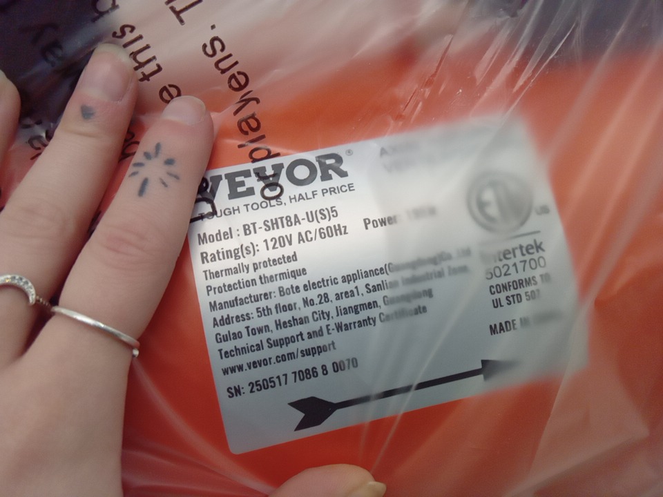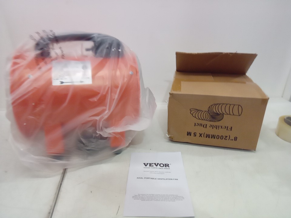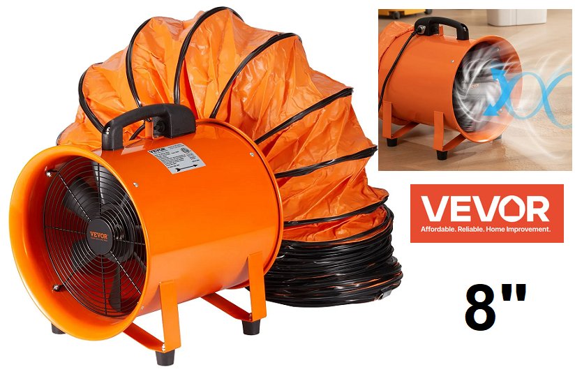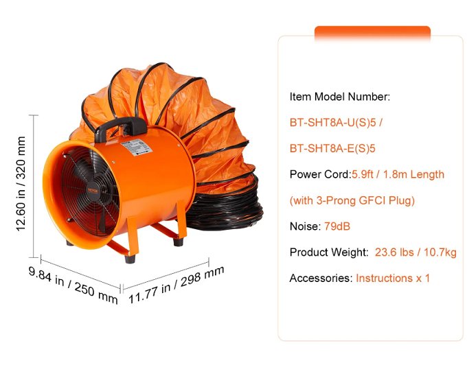 Vevor Metal Axial Portable Propeller Ventilation Fan with duct hose (16.4ft) - 8" - 120v - 195w - 1070cfm - Orange/Black (Model: bt-sht8a-u(s)5)