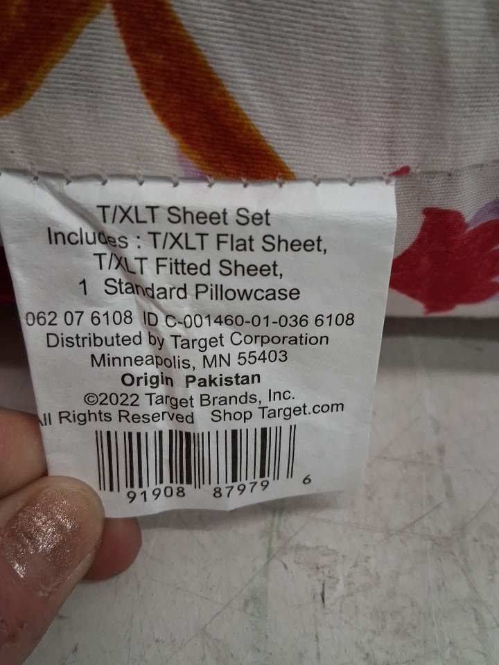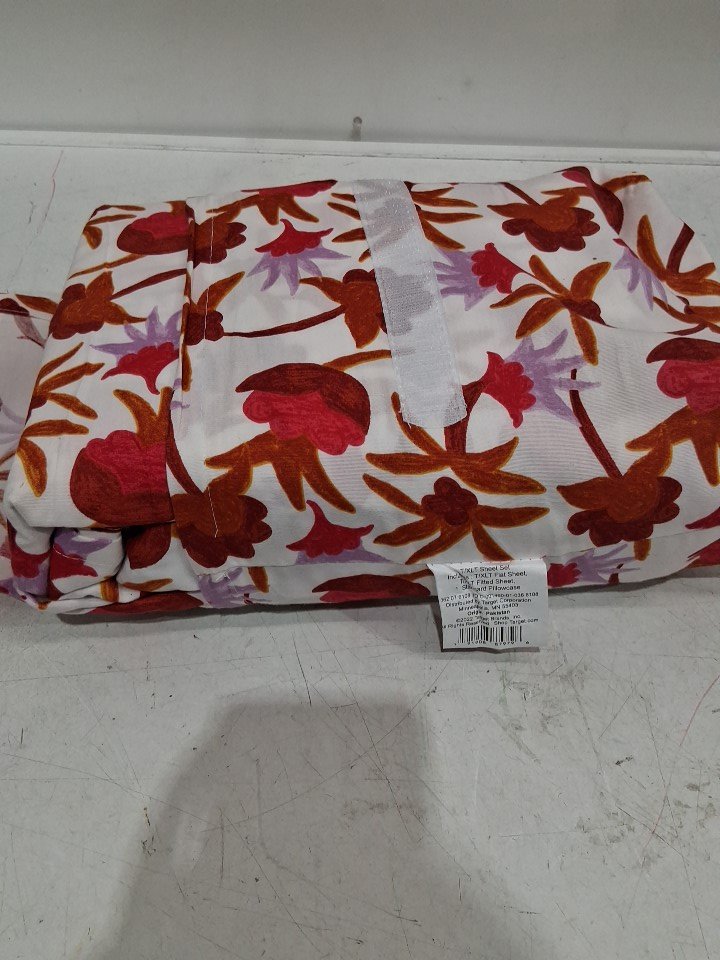 4pc printed cotton sheet set - twin / twin -xl - red floral