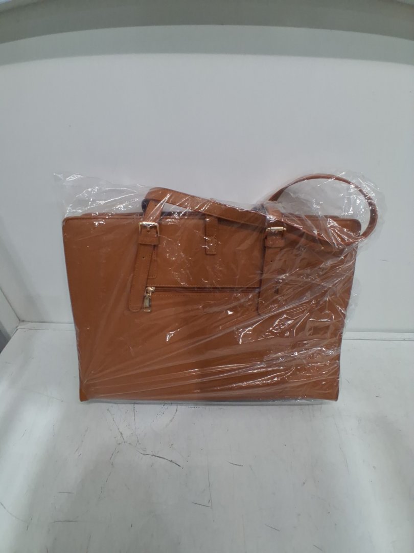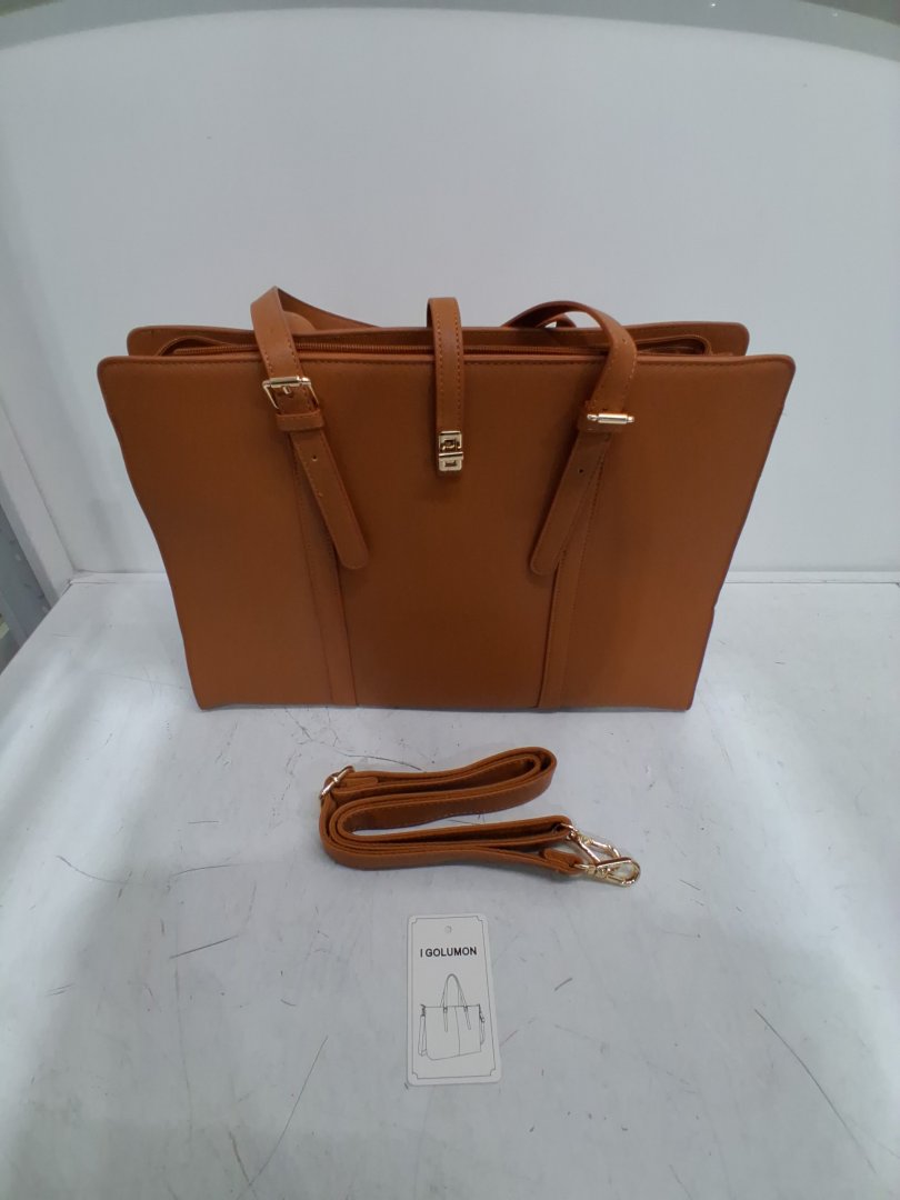 Women's IGOLUMON Large Leather Tote Bag for Laptop with Shoulder strap - 15.6" - Brown