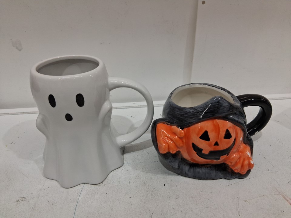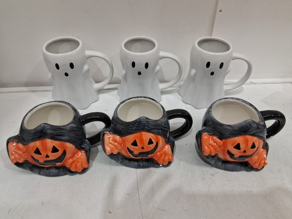 A COUPLE OF THE PUMPKIN MUGS HAVE VERY LIGHT CHIPS IN THE PAINT ON THE FRONTS (SEE PHOTOS FOR EXAMPLE)