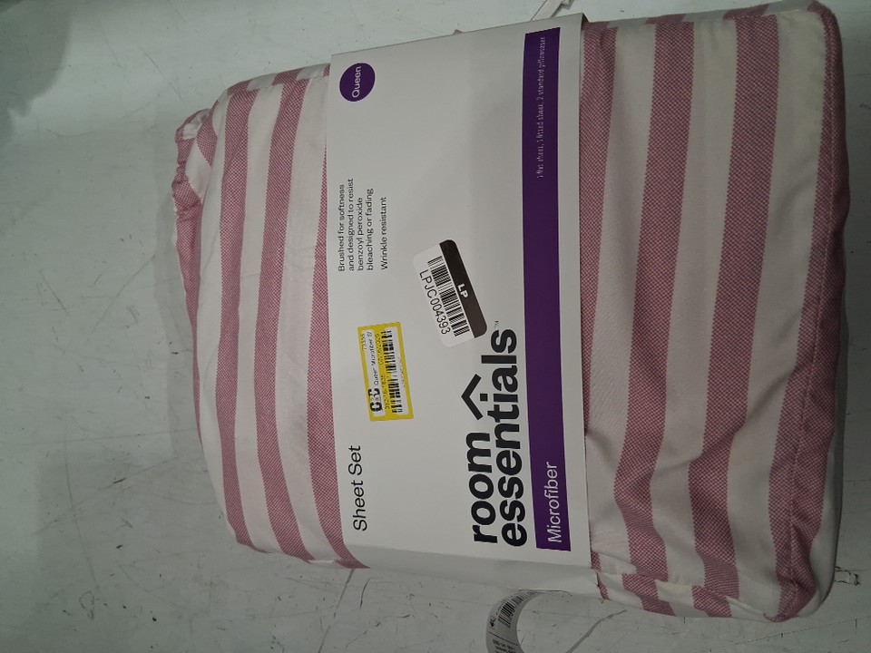 4PC ROOM ESSENTIALS MICORFIBER SHEET SET - QUEEN - PINK STRIPE
