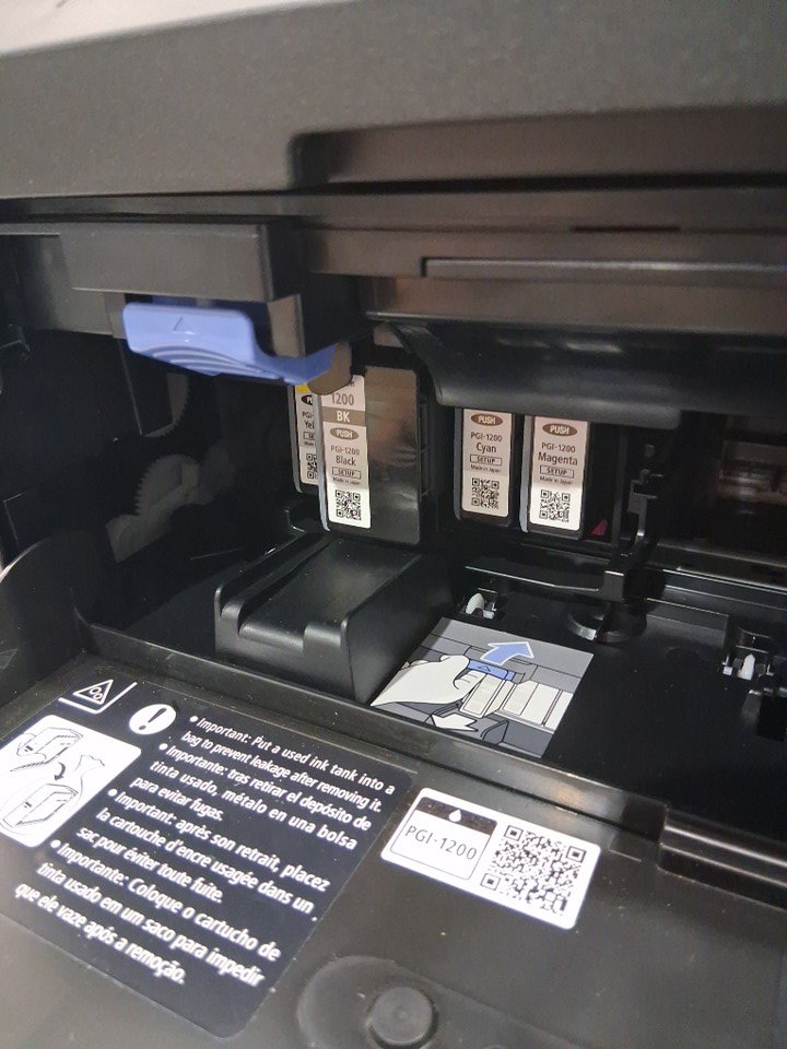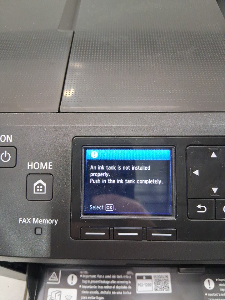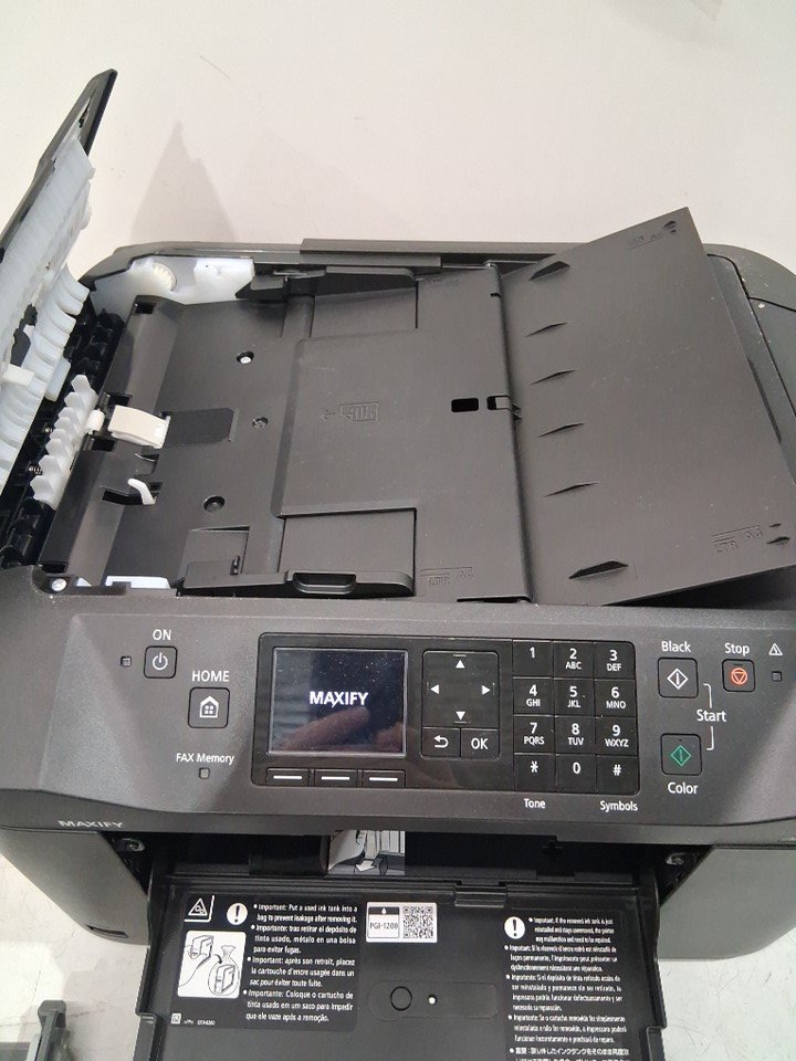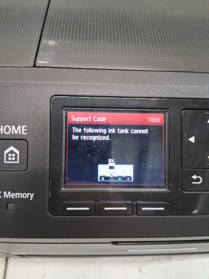 missing the software disc Also there is a support code associated with the black ink cartridge upon inspection it was noted that the cartridge will not fit securely into the cartridge bay. the product does power up and when the black cartridge is removed the device seems to operate but may possibly need further maintenance and or repairs .