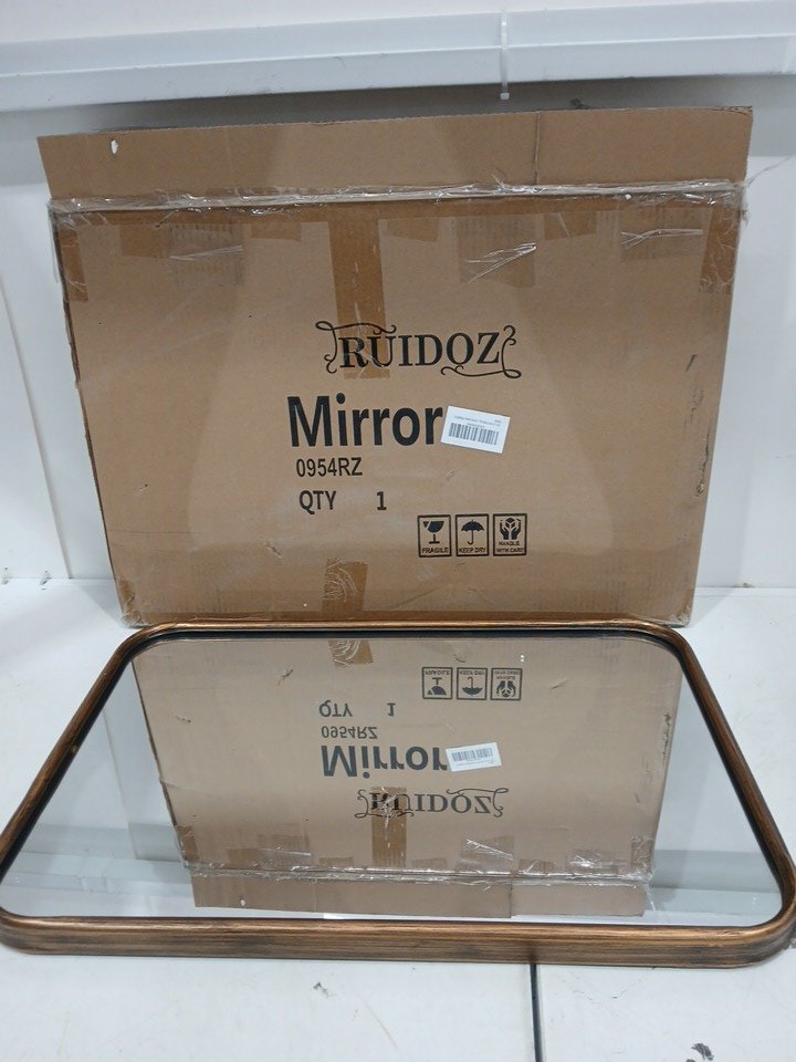 RUIDOZ RECTANGLE WALL mounted MIRROR with rounded corners and metal frame - 16" x 24" - brown (MODEL: 0954RZ)