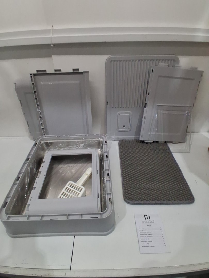 Marchul Enclosed covered Stainless Steel Cat Litter Box with Lid Drawer scoop and litter mat - EXTRA LARGE - light grey (MODEL: US2A222GY)