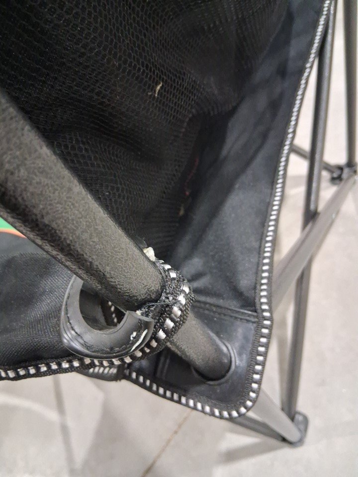 the sides of the chairs have some rip marks, and the seat of the chair has a sim mark, see photos.