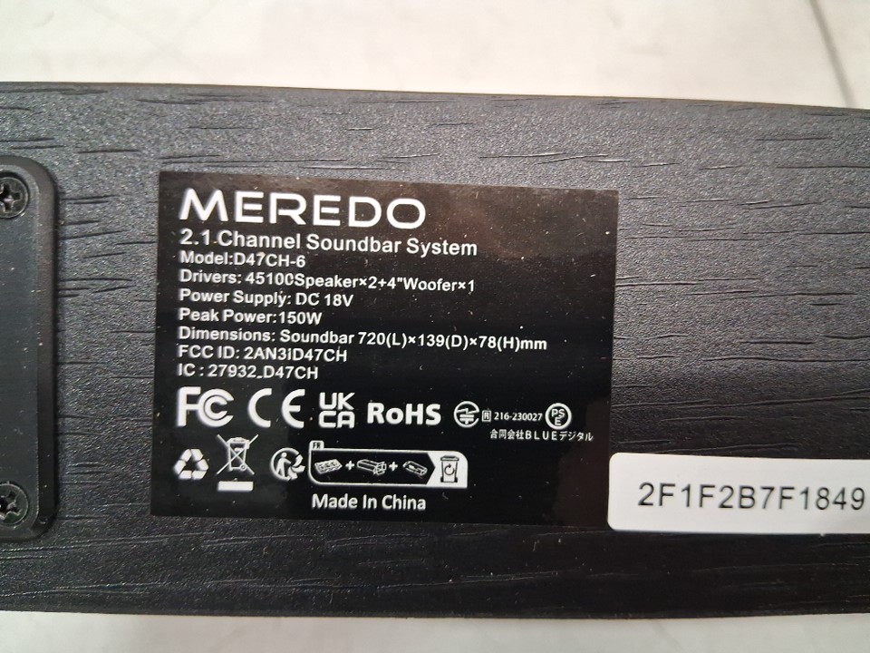 MEREDO Sound Bar - Built-in Subwoofer 150W 2.1CH with HDMI ARC/Bluetooth 5.0/Optical/AUX Connection - 28" - BLACK (MODEL: d47ch-6)