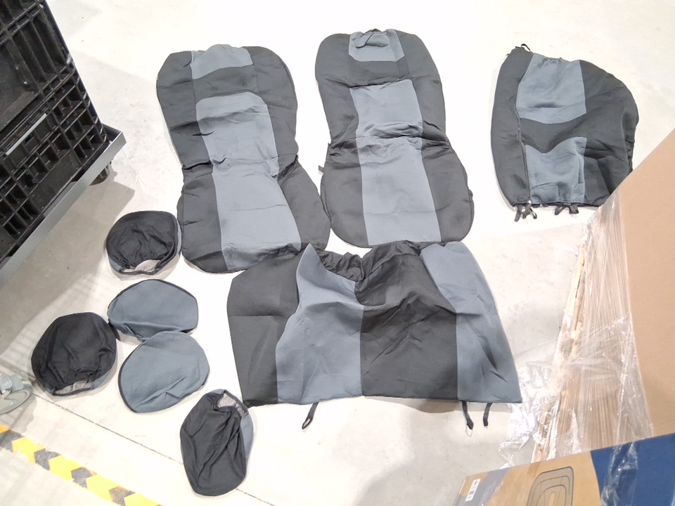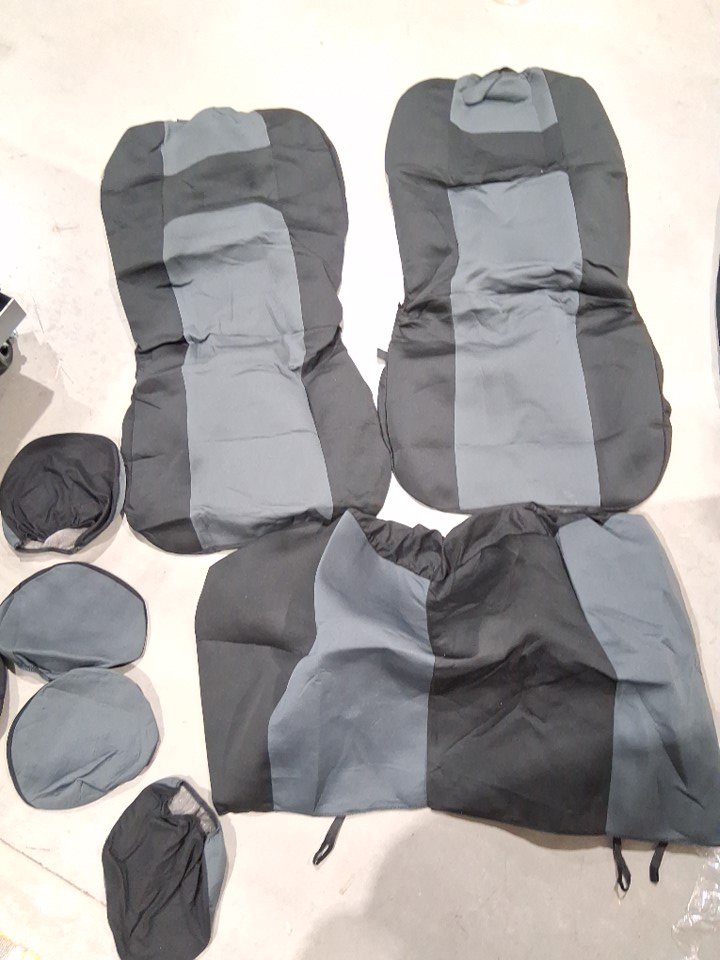 9PC CARXS BDK POLYPRO CAR SEAT COVERS for FRONT AND REAR WITH HEADREST COVERS - GREY/BLACK (MODEL: OS-309-CC)