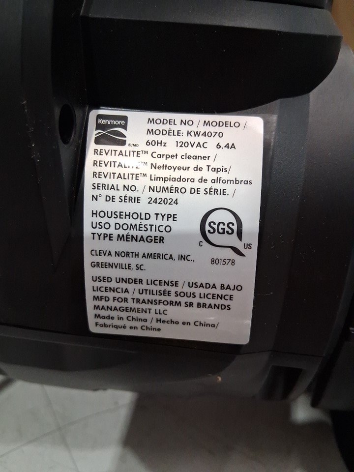kenmore portable carpet cleaner - 3.2l clean tank - 1.5l dirty tank - 8ft hose - 25ft power cord - black (model: kw4070)