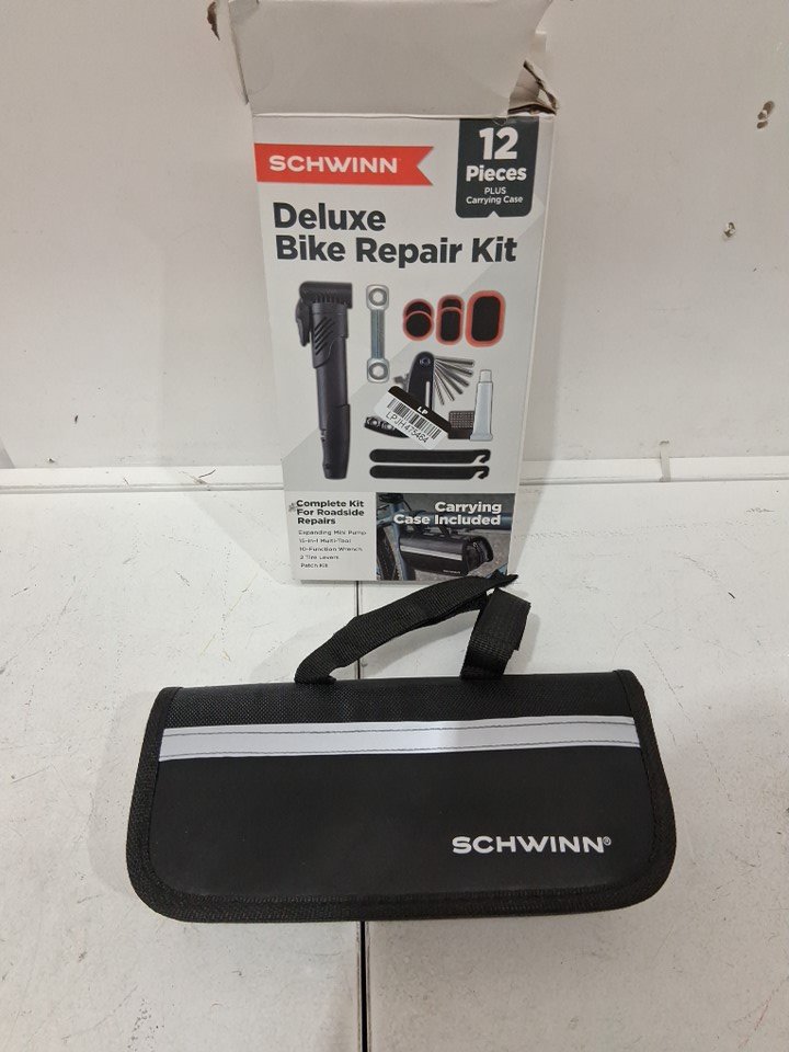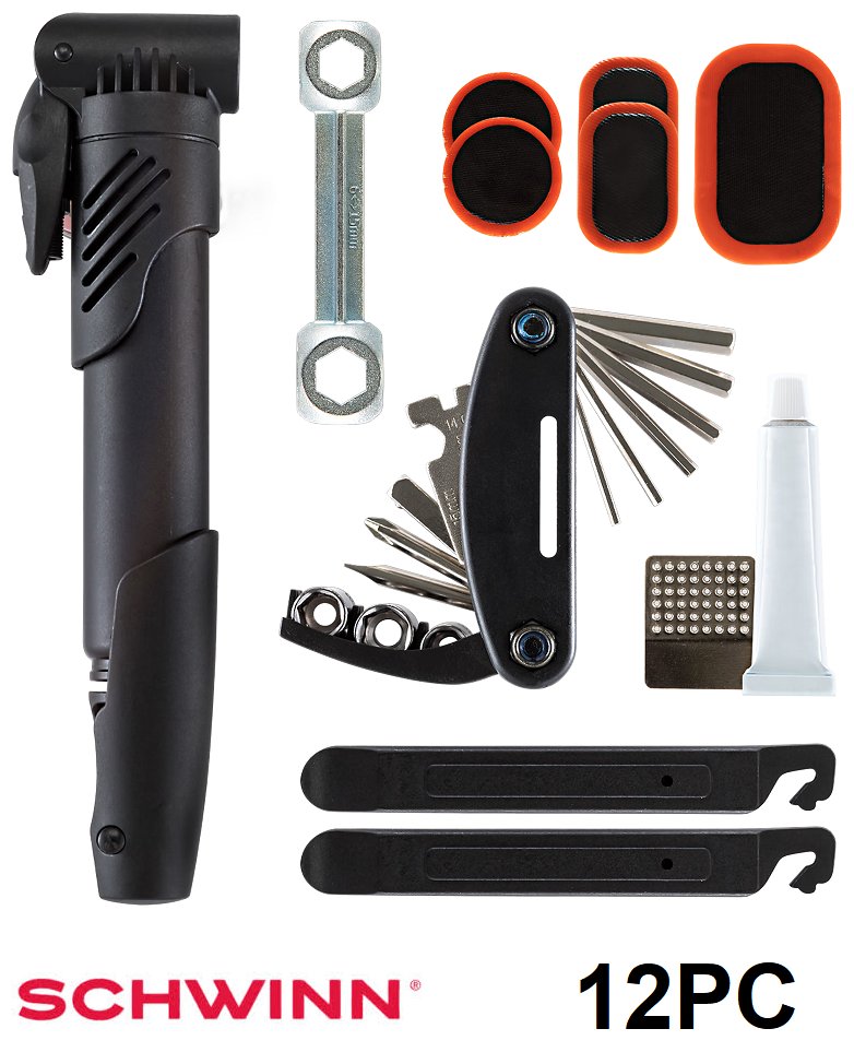 12PC SCHWINN DELUXE BIKE COMPLETE REPAIR KIT FOR ROADSIDE REPAIRS WITH CARRYING CASE