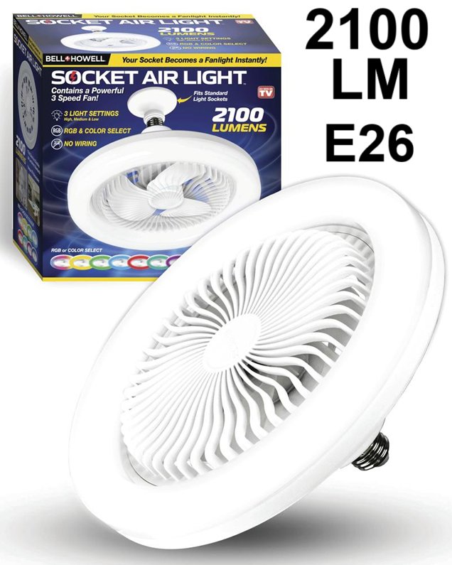 2 IN 1 BELL+HOWELL COLOUR SELECT LIGHT BULB SOCKET AIR FAN LIGHT - RBG LED - 2100LM - E26 (MODEL: 2308)