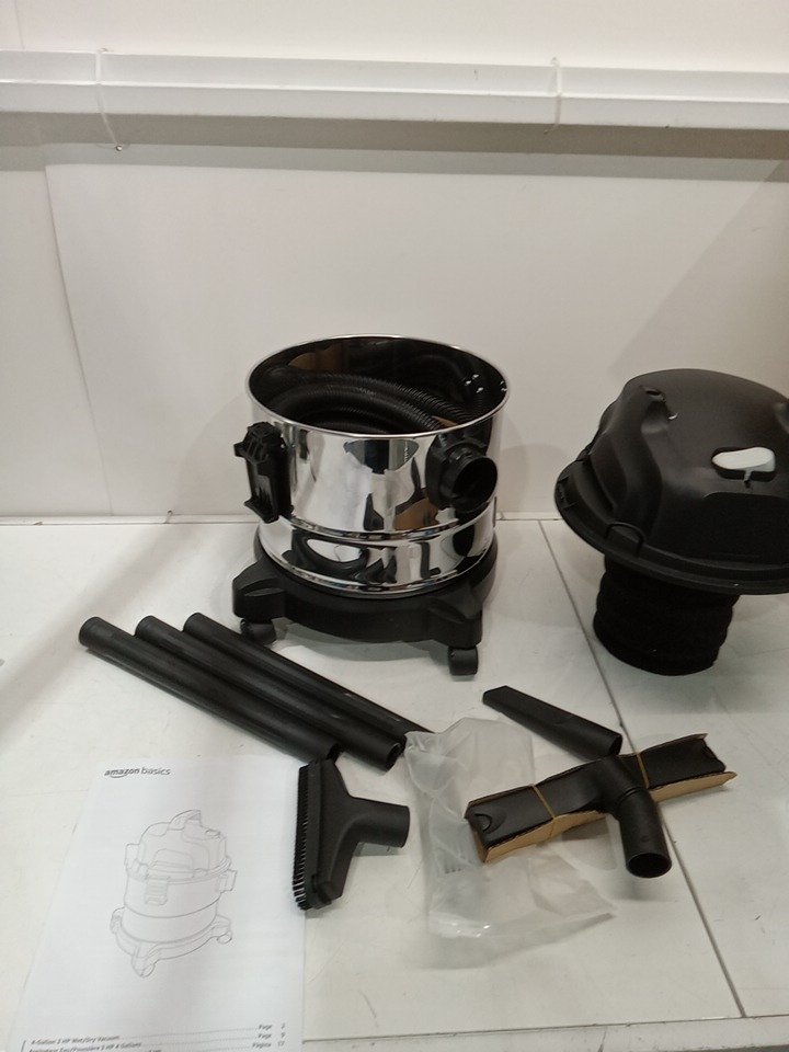 AMAZON BASICS STAINLESS STEEL WET/DRY VACUUM - 3HP - 4GAL - SILVER (MODEL:VO407S)
