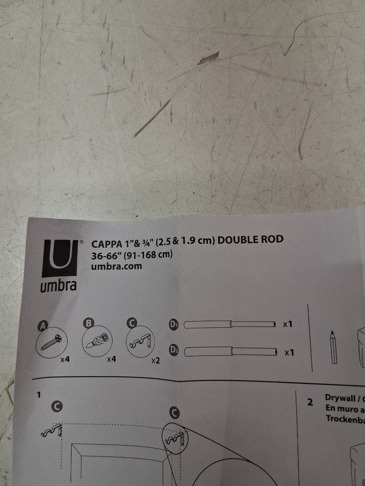 Umbra Cappa Double Set for Window Drapery with 2 adjustable curtain rods, matching finials, brackets and hardware - 36'' - 66'' - nickel/steel (model: 1014557-411)