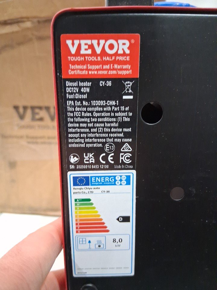 VEVOR DIESEL AIR HEATER WITH REMOTE CONTROL FOR TRUCKS, CARS, MOTOR HOMES AND BOATS- 8KW - 12V - RED (MODEL:CY-36)