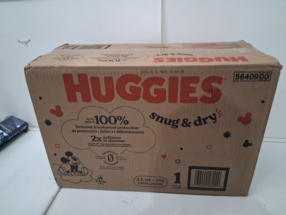 256PK HUGGIES SNUG AND DRY DIAPERS WITH TRIPLE LAYER PROTECTION - SIZE 1
