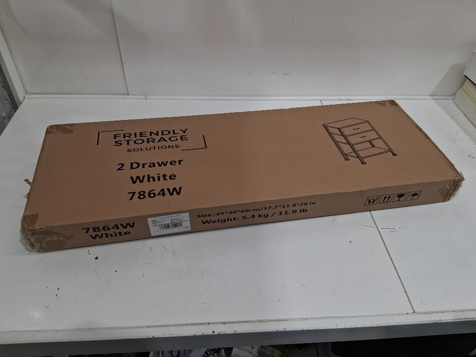 FRIENDLY STORAGE SOLUTIONS 2 DRAWER NIGHTSTAND WITH SHELF/BEDSIDE TABLE WITH SHELF - WHITE (MODEL: 7864W)