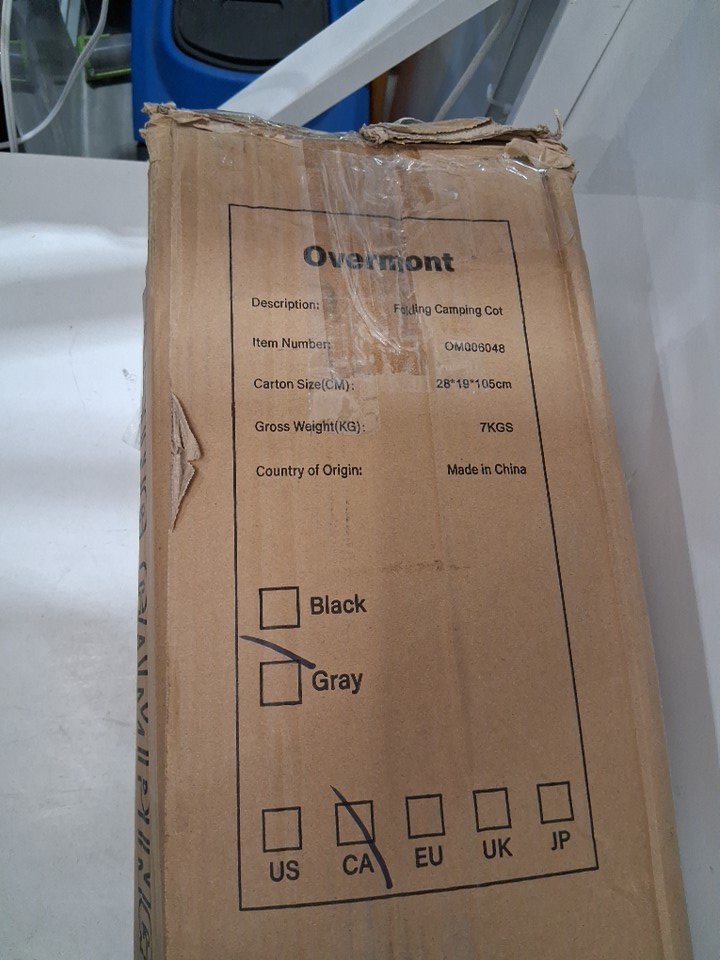 adult Overmont foldable Camping Cot with Carry Bag - 550lbs max - black\grey (model: om006048)