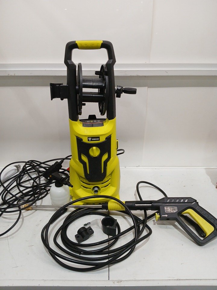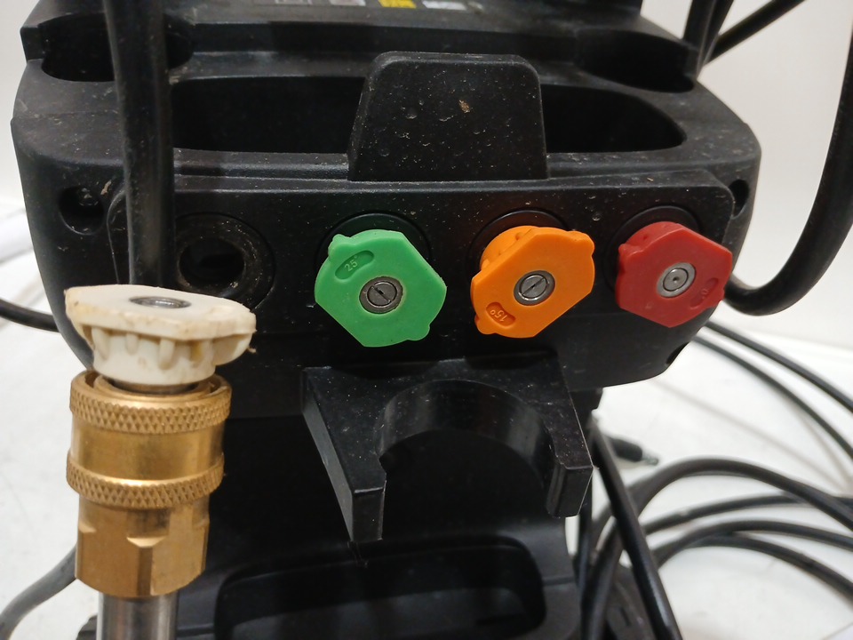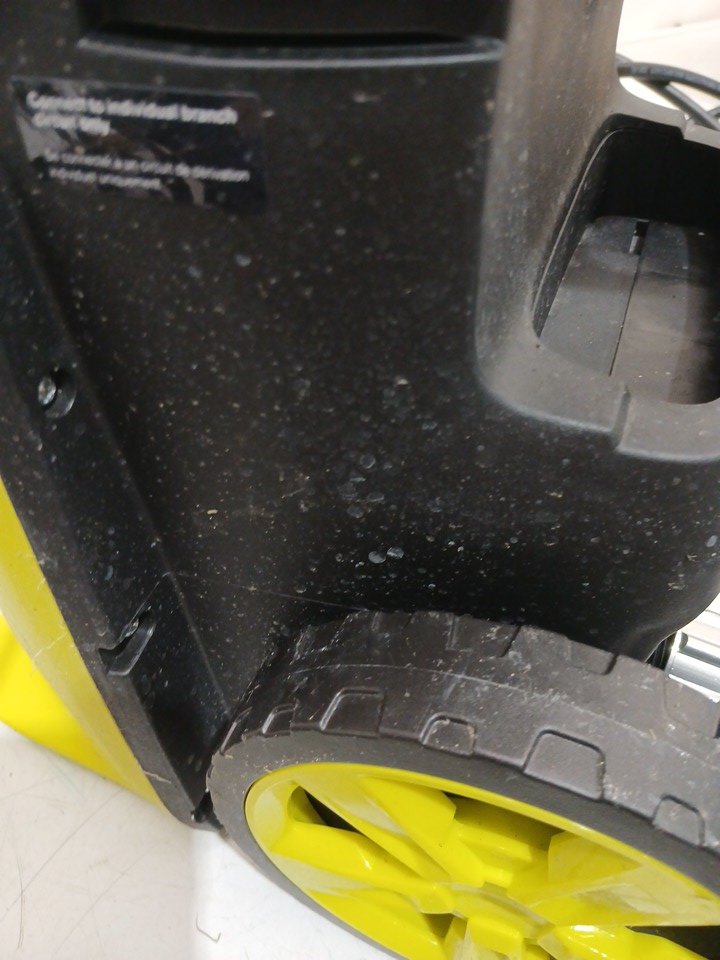 there is a significant amount of dirt, moisture & scuffs/scratches present due to previous use. part of the hose reel is missing (it's not secured, but appears to be repairable).