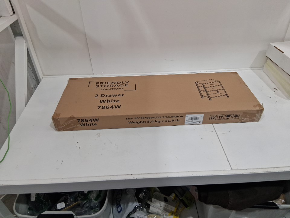 FRIENDLY STORAGE SOLUTIONS 2 DRAWER NIGHTSTAND WITH SHELF/BEDSIDE TABLE WITH SHELF - WHITE (MODEL: 7864W)
