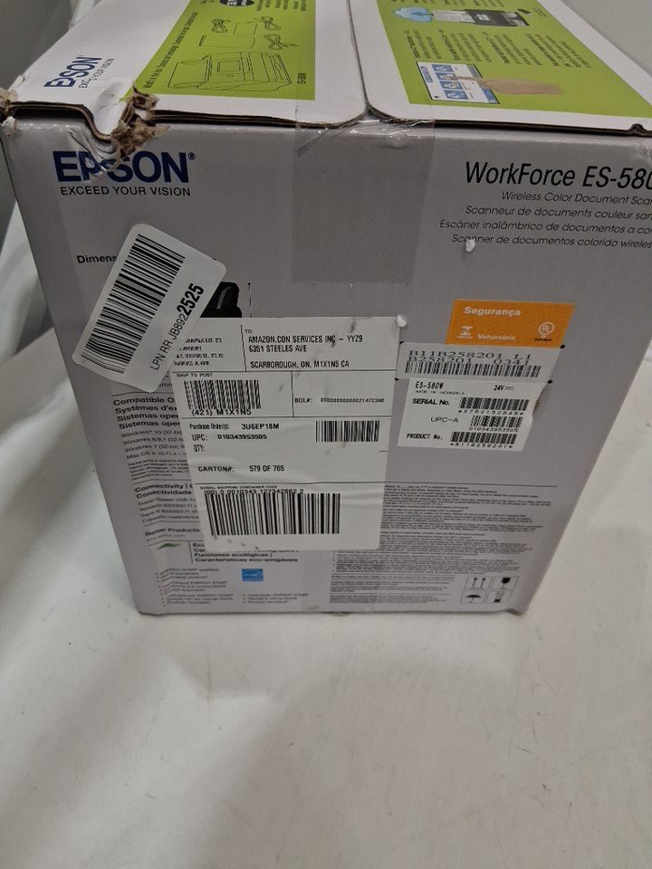 Epson Workforce ES-580W Color Duplex Desktop Document Scanner with 100-sheet ADF & Intuitive 4.3" Touchscreen (MODEL: ES-580W/J382C)