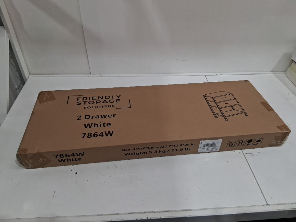 FRIENDLY STORAGE SOLUTIONS 2 DRAWER NIGHTSTAND WITH SHELF/BEDSIDE TABLE WITH SHELF - WHITE (MODEL: 7864W)