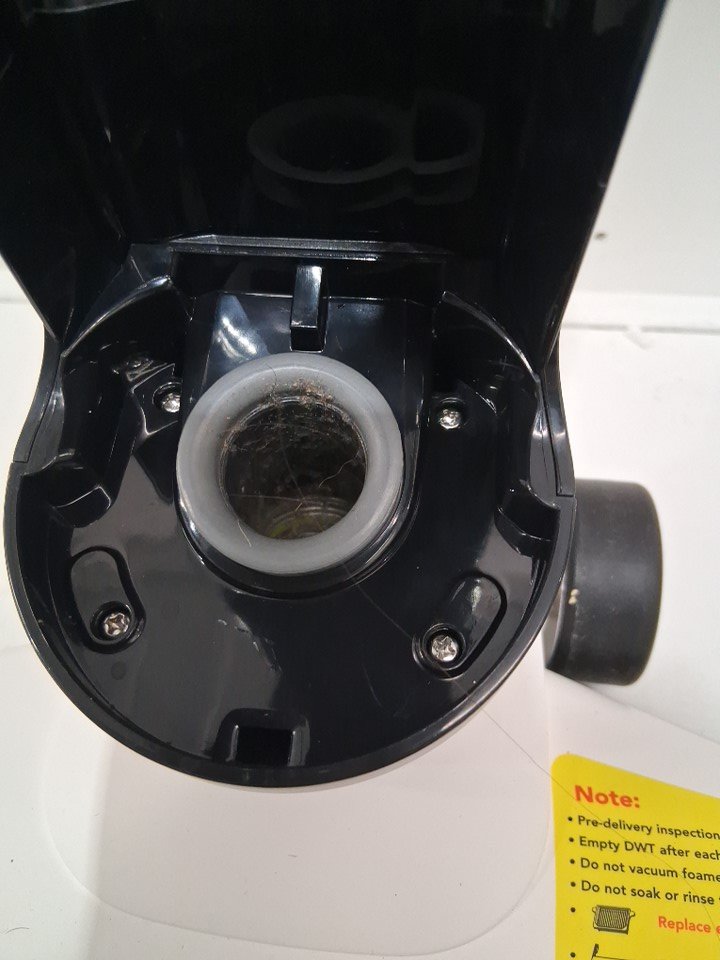 item tested for power and is working there is some dirt/dust in the camber of the item, one of the rollers has some signs of being previously used and the bottom of the vacuum has signs (photos to show)