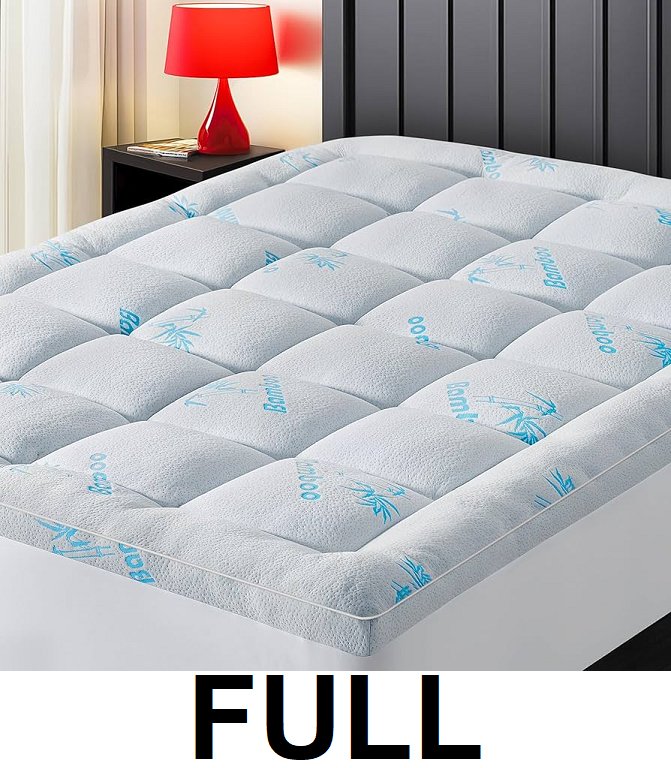 Bamboo pillow top Mattress Topper - FULL - 54" x 75" - WHITE/blue