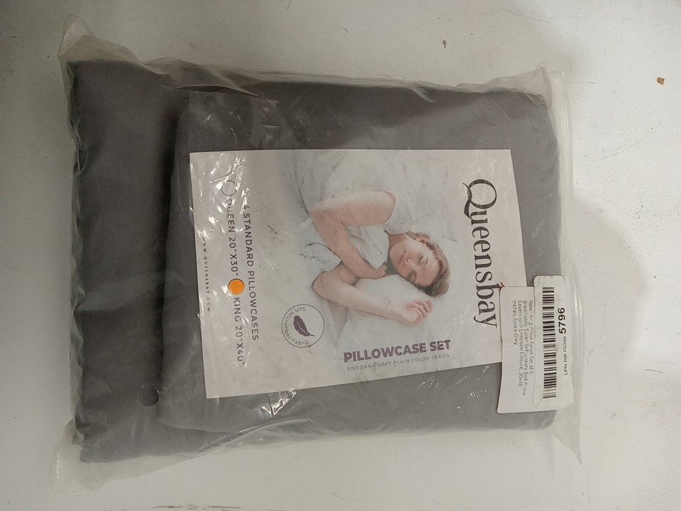 4PK QUEENSBAY BREATHABLE, SUPER SOFT PILLOW COVERS WITH ENVELOPE CLOSURE - KING (20" X 40") - GREY