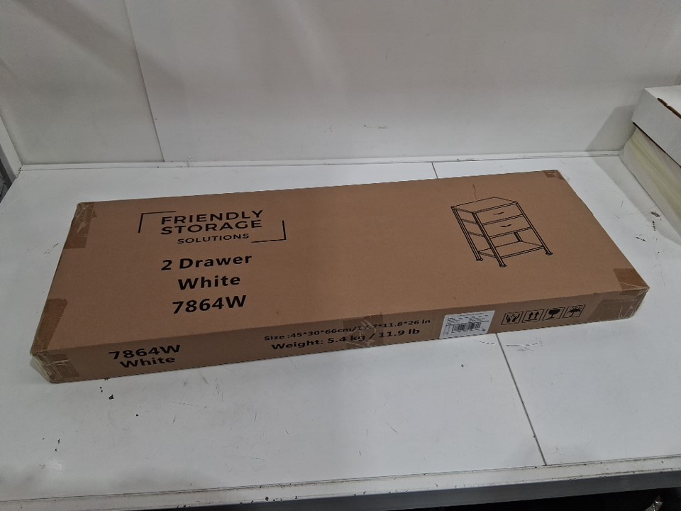 FRIENDLY STORAGE SOLUTIONS 2 DRAWER NIGHTSTAND WITH SHELF/BEDSIDE TABLE WITH SHELF - WHITE (MODEL: 7864W)
