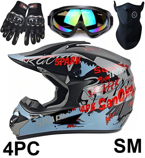 Sanqing full face atv motocross helmet with gloves, goggles and mask - small - black