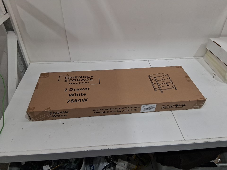 FRIENDLY STORAGE SOLUTIONS 2 DRAWER NIGHTSTAND WITH SHELF/BEDSIDE TABLE WITH SHELF - WHITE (MODEL: 7864W)