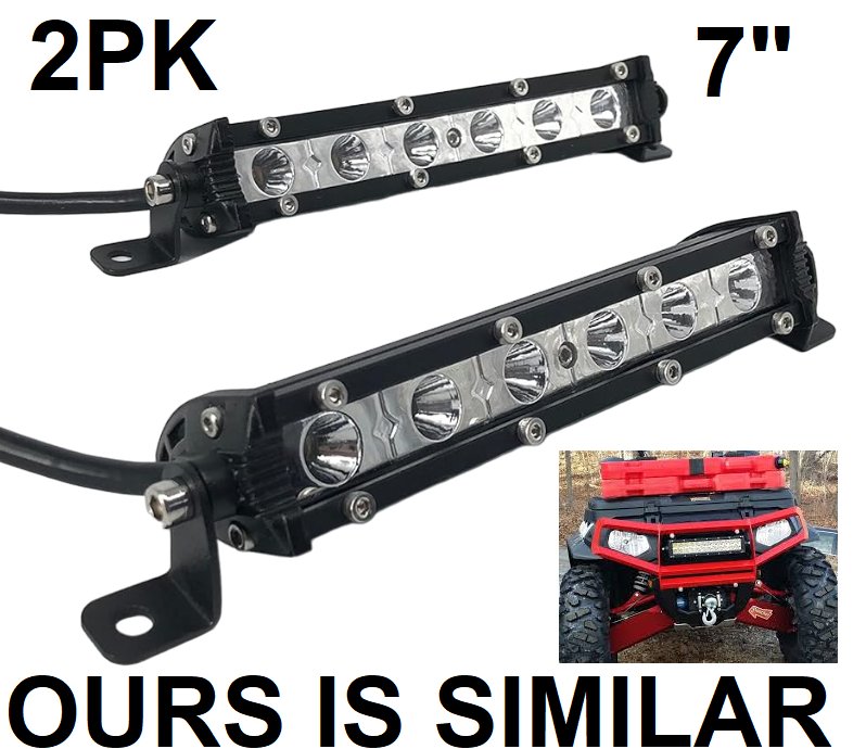 2pk slim led light bar, waterproof for off road vehicles - 7" - black