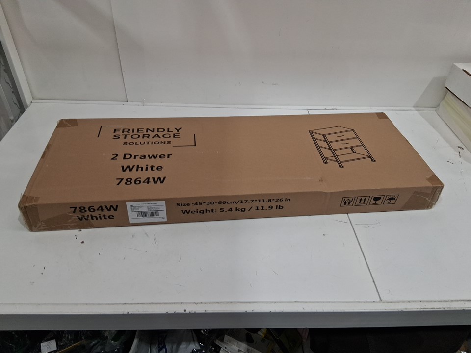 FRIENDLY STORAGE SOLUTIONS 2 DRAWER NIGHTSTAND WITH SHELF/BEDSIDE TABLE WITH SHELF - WHITE (MODEL: 7864W)