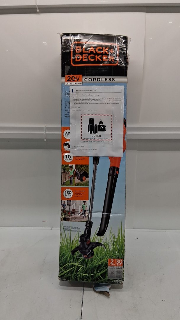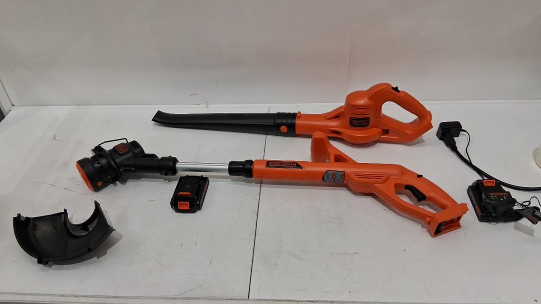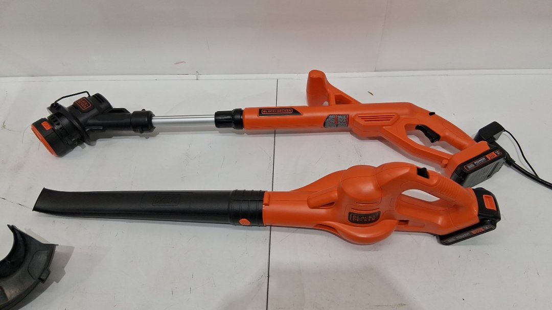 2PC BLACK+DECKER Cordless 10" String Trimmer/Edger and Sweeper Kit with 1.5Ah Battery and Charger - 20V Max - Black/Orange (Model: LCC222-CA/LSW221/LST201)