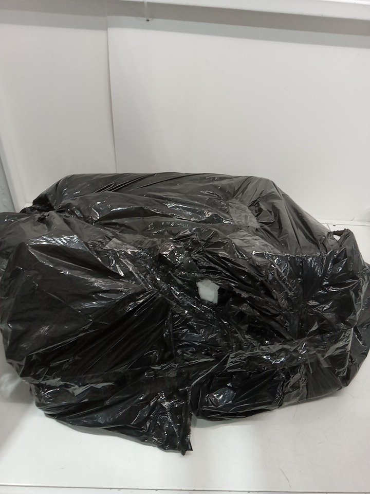 Some dirt/hair on it from previous use. The two triangular pieces are attached.