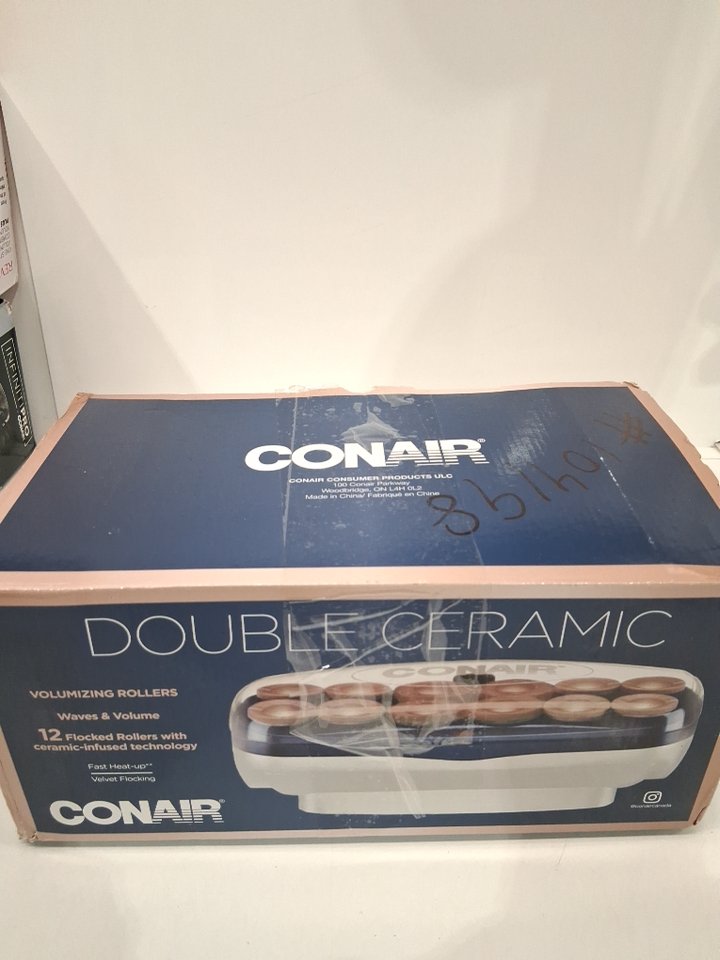 conair double ceramic volumizing velvet flocked rollers - 1.5" & 1.75" sized rollers - white/rose gold (model: CHV14NC)