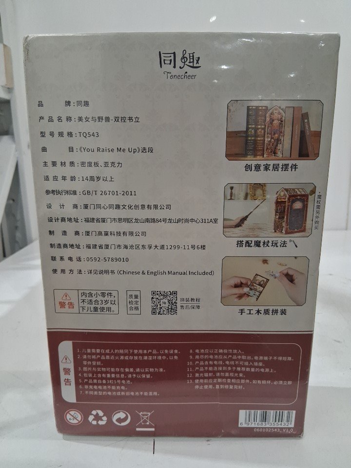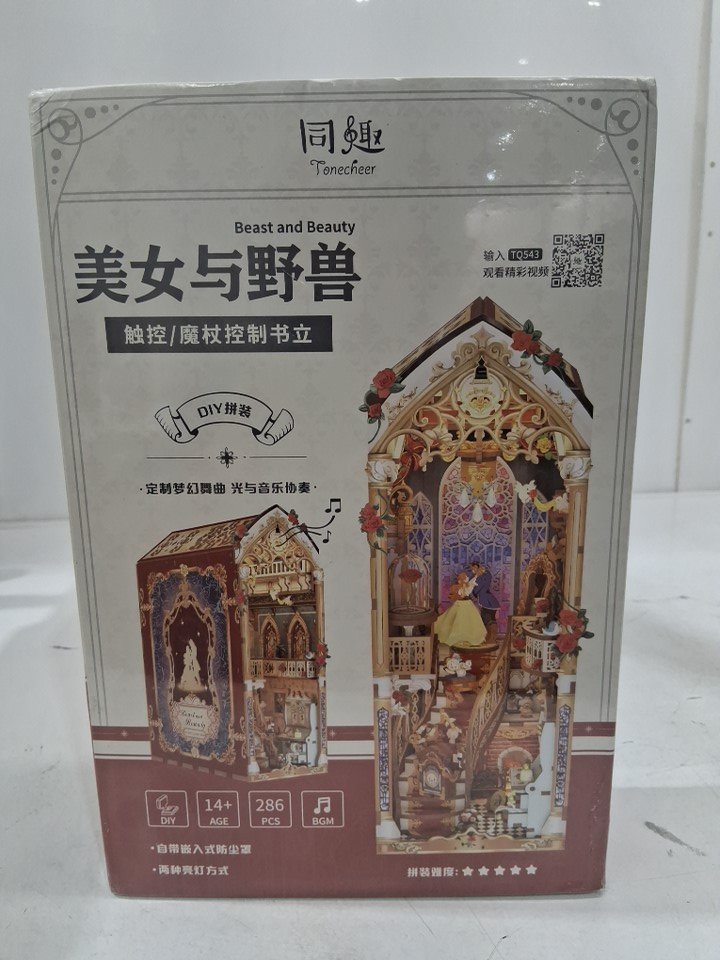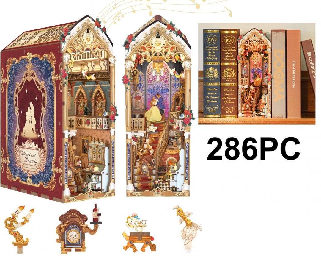 286pc tonecheer diy book nook 3d wooden model kit for decoration with music and led lights - 10" - beast & beauty - (model: tq583)