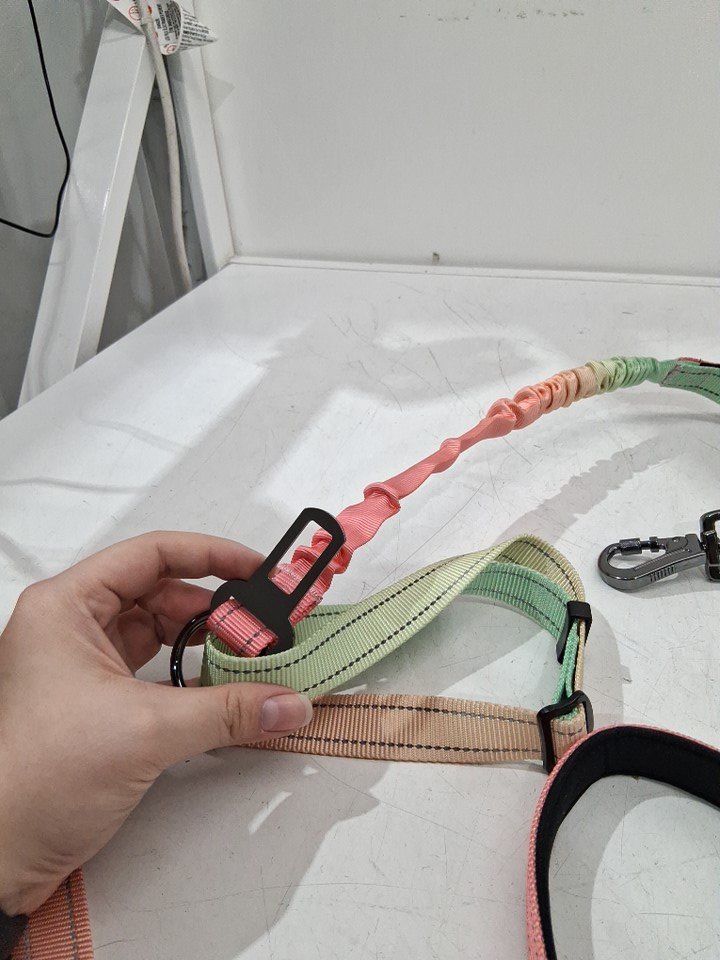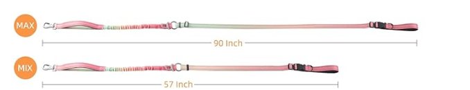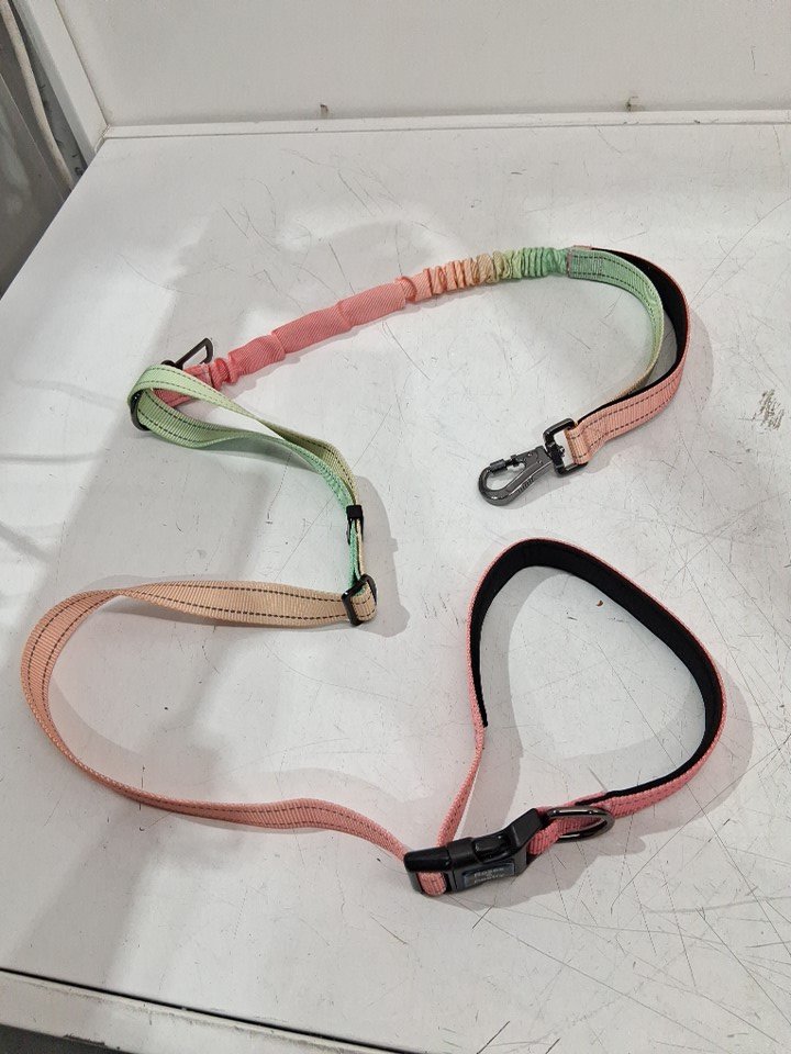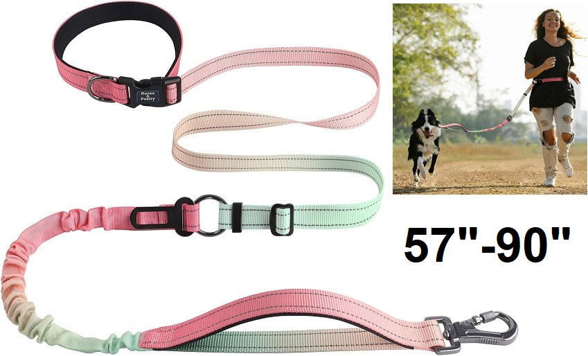 Roses&Poetry heavy duty Hands Free Dog Leash with no pull bungee waist leash and car seatbelt - large - 57" to 90" - pink/green