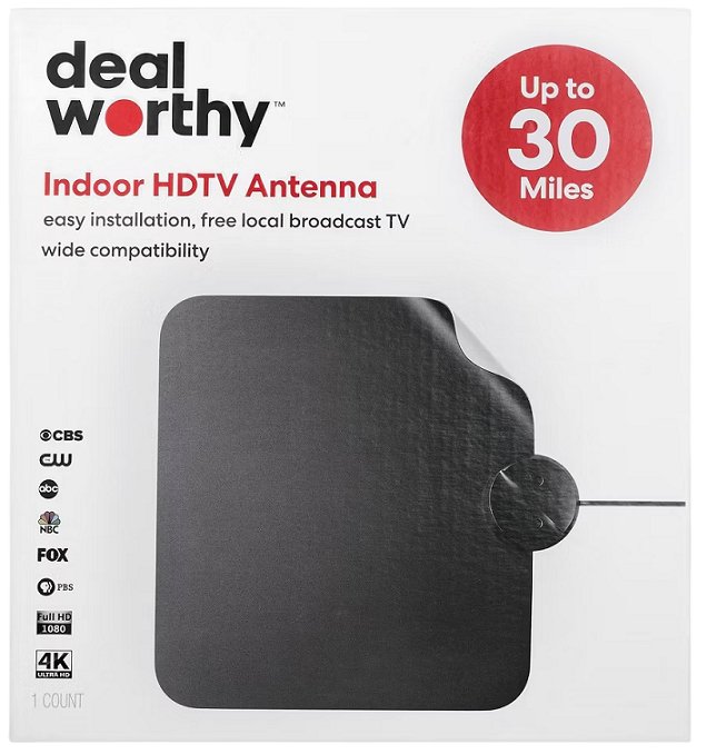 dealworthy Indoor HDTV Antenna - 30-Mile Range - Black