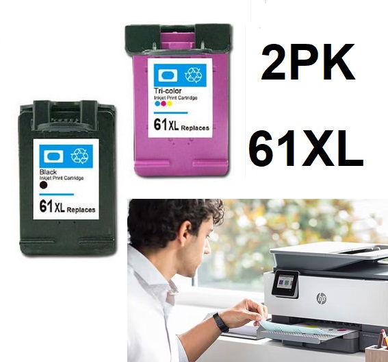 2PK Remanufactured Ink Cartridge for HP Printers - 61XL - Black/Tri Colour