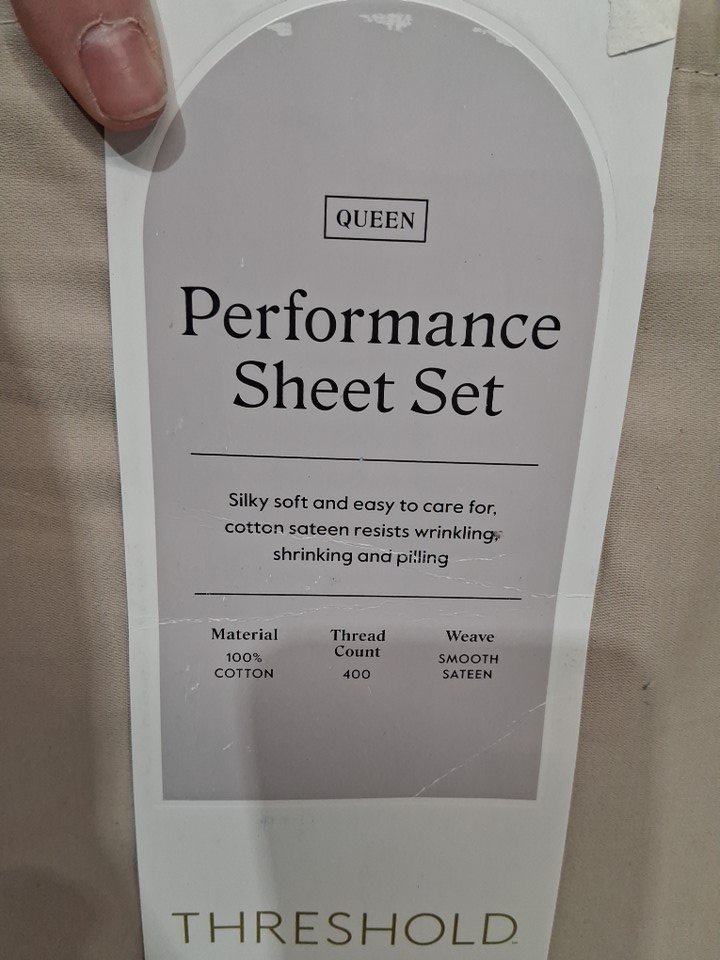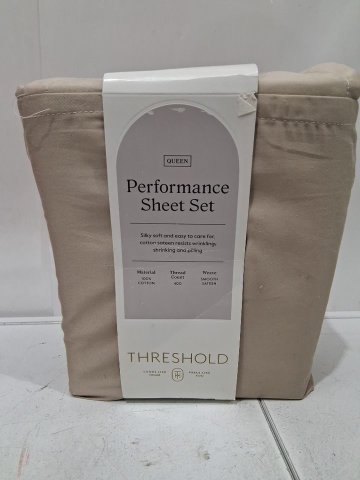 4PC Threshold Performance 400 Thread Count Sheet Set - QUEEN - KHAKI