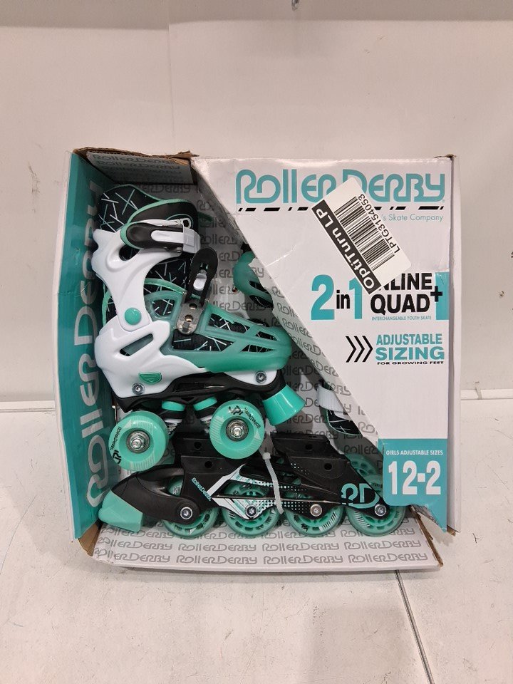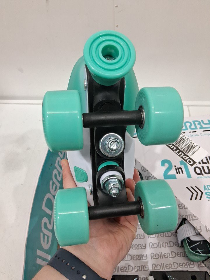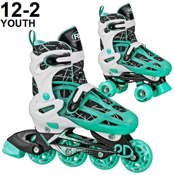 YOUTH Roller Derby Mint Prodigy Kids' Adjustable Inline-Quad 2-IN-1 Combo Skates - SIZE 12-2 - MINT/WHITE/BLACK
