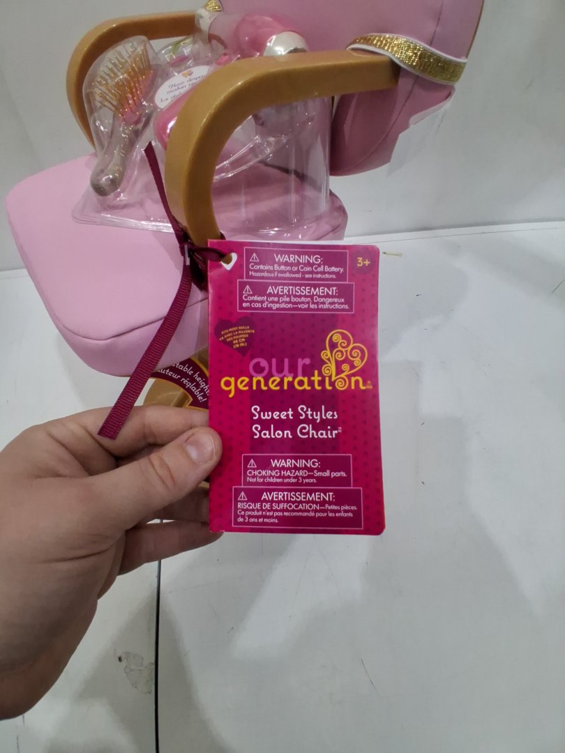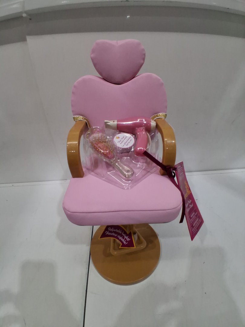Our Generation Doll Salon Chair Playset Hair Dryer with Sound & Styling Accessories - 18" - pink/gold (model: BD35407Z)