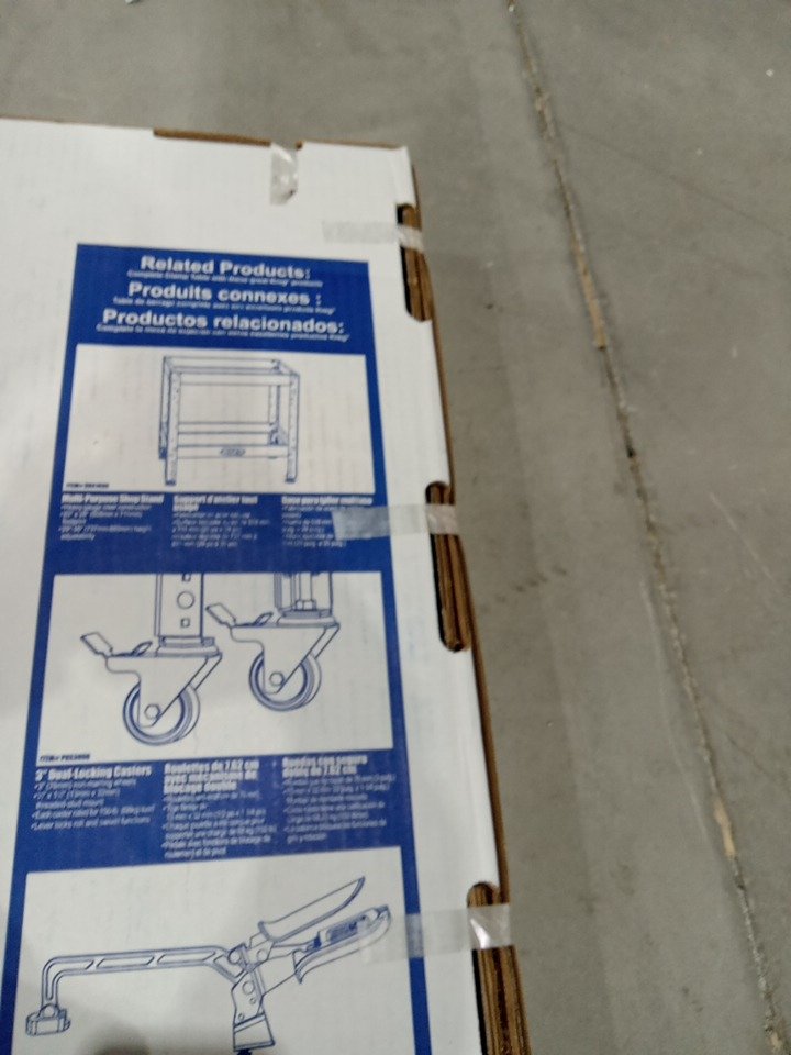 this item is the table top part only, other parts of this set are sold separately such as the multi purpose shop stand, 3" dual locking casters and 6" bench clamps.