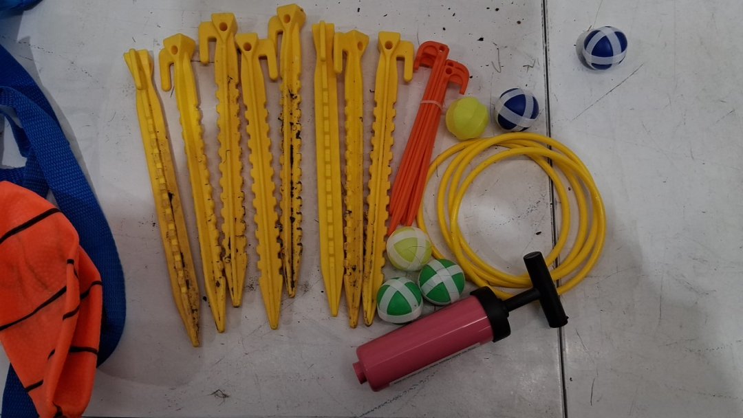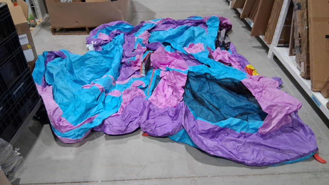 tested power on blower. Bottom of the castle has dirt, indicating previous use.