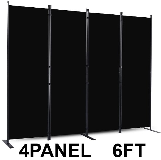 ‎CHOSENM 4 Panel Room Divider Privacy Partition Screens - 6FT - BLACK - (bcpf-pj-4p-550)