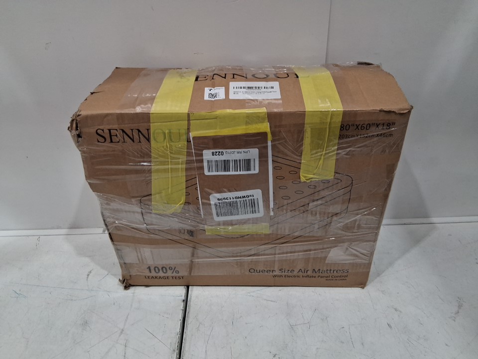 sennoul quick-inflating air mattress with built in air pump - queen - 18" height - blue/cream